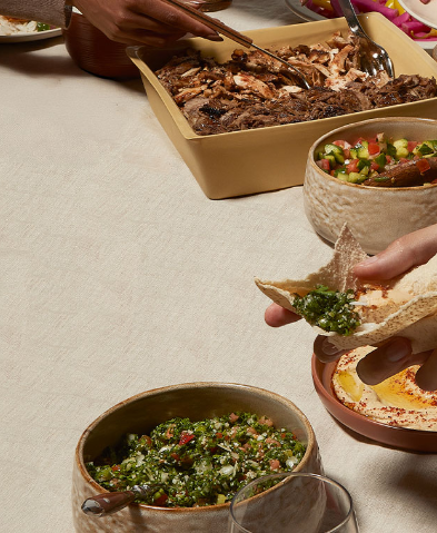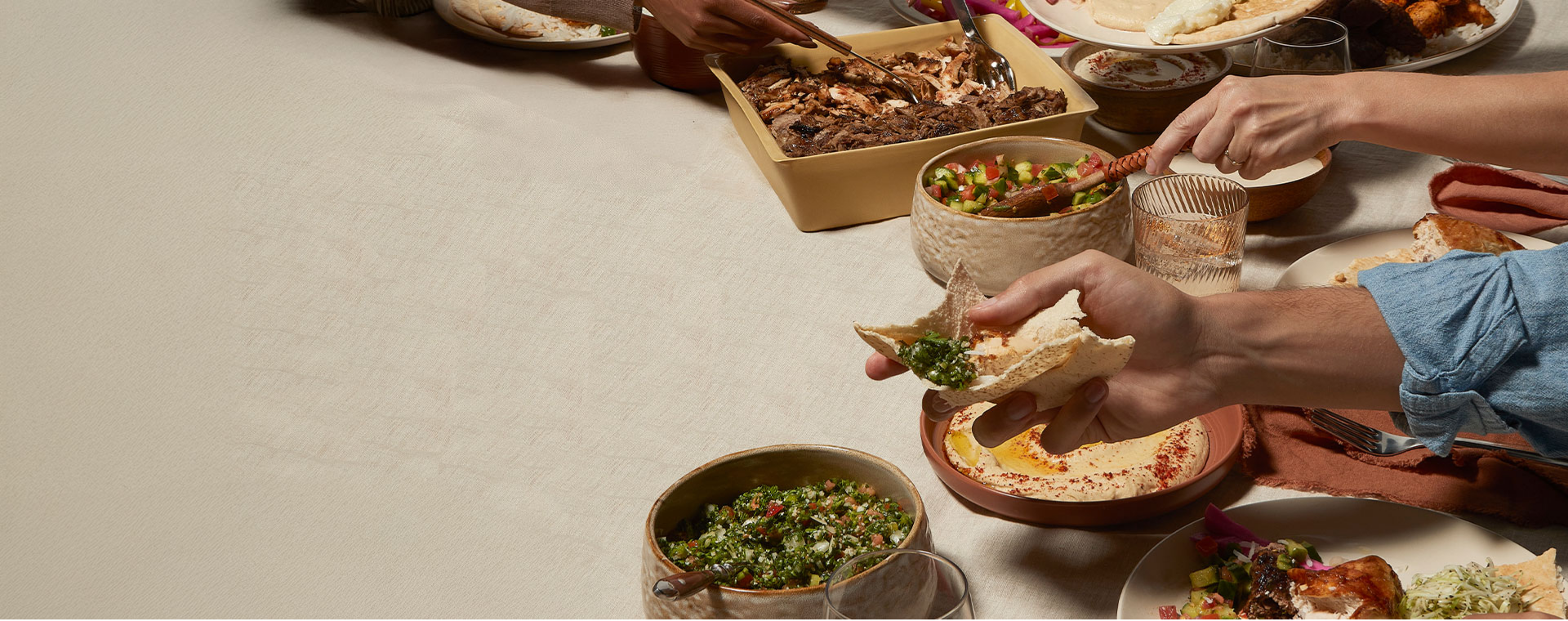 2 Whole Chickens, 1 tray of Chicken Tarna®, Tri-Tip Shawerma or Combo, 12 Kabob Skewers, 20 Falafels, 2 large sides or side salads, 2 basmati rice, and 8 pita packs. Served with 2 large garlic sauce, 1 large tahini, 1 large harissa, and pickled turnips & chilies.
